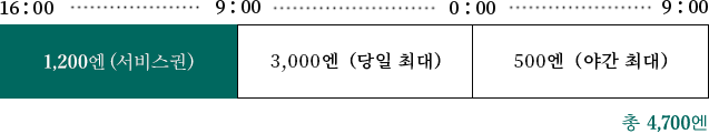 | 숙박 손님 우대 요금 | 16:00~다음날 9:00까지 출입고불가 1박 1,200엔 |